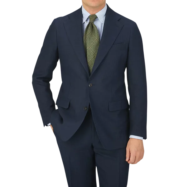 Made from high-quality, breathable fabric, the suit ensures comfort throughout the day while maintaining a sharp, tailored look. The jacket offers a structured silhouette with notch lapels, functional pockets, and a two-button closure, while the matching trousers feature a slim, modern fit for a polished appearance.